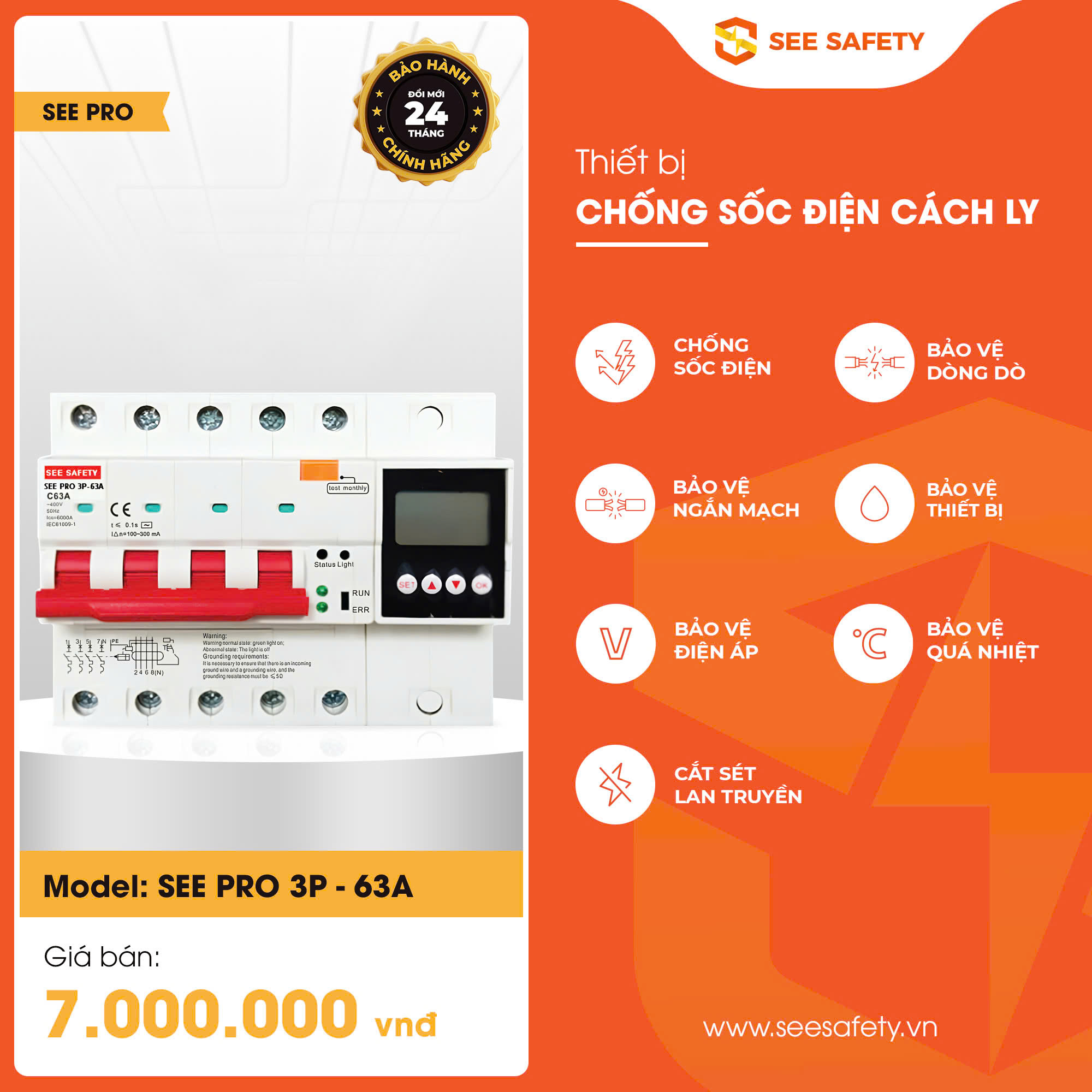 Thiết bị chống sốc điện cách ly 3 pha SEE PRO 3P – 63A sẽ là giải pháp tối ưu cho mọi hệ thống điện 3 pha, giúp tăng cường an toàn và hiệu quả hoạt động.